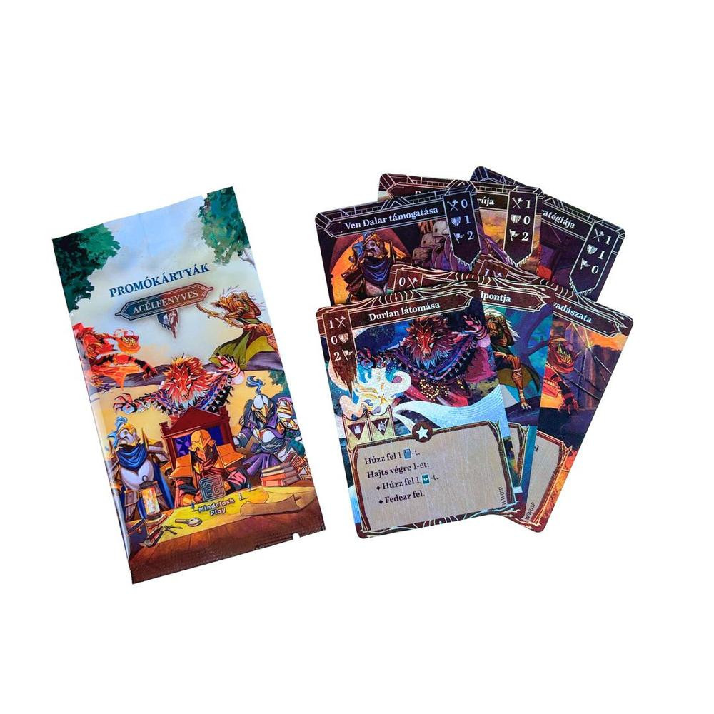Acélfenyves társasjáték és promókártya