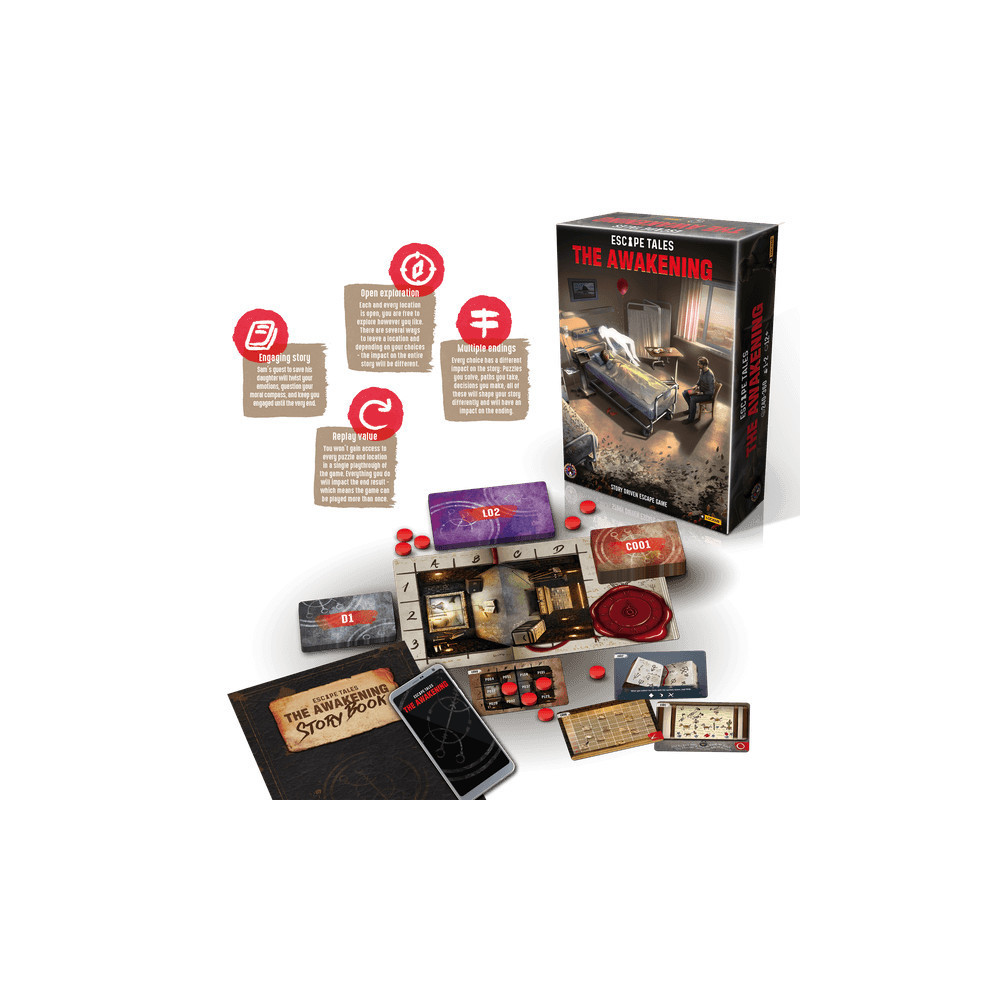 Éld át saját szobádban a szabaduló paklik izgalmát ezzel a sztori alapú társasjátékkal! Különleges felfedezések, korlátok nélküli puzzle megoldás és nehéz döntések várnak rád. Lépj be Sam bőrébe, aki próbálja megmenteni kómában lévő lányát. Kapcsolódj be az izgalmas kalandba, és fedezd fel, hogyan segíthetsz Samnek a rituális Awakening feladat megoldásában. Te készen állsz a kalandra?