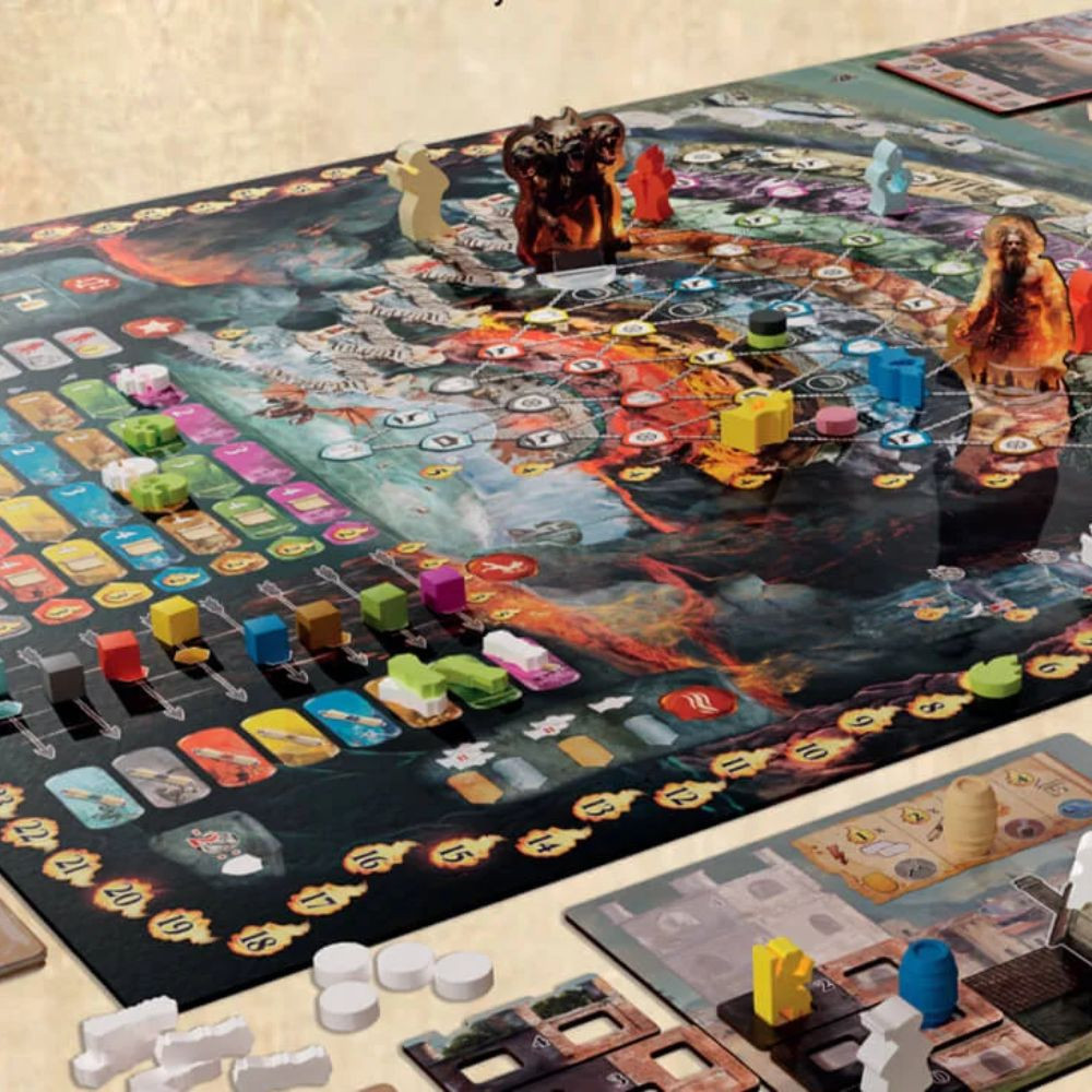 Lépj be Dante világába ebben a komplex lélekgondozós (soul-management) stratégiai játékban, ahol 1-4 játékos irányítja a bűnös lelkeket. Az Inferno fázisban lelkeket juttatsz a Pokol körébe, míg a Firenze fázisban városi akciókat végzel, hogy befolyást szerezz, és ezzel növeld Hírnévspontjaidat. A játék hangulata a középkor világias morális dilemmáit idézi, politikai és társadalmi döntésekkel.