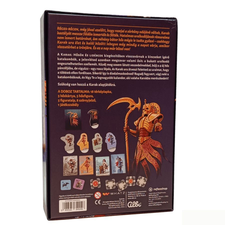 A Karak: Hősök és lidércek kiegészítő az alapjáték izgalmas elemeit – mint a furfangos szörnyek, értékes kincsek és kihívások – új szintre emeli, hozzáadva új karaktereket és játékmódot, amely garantáltan leköti a játékosokat. A játék már 7 éves kortól ajánlott, és 2-5 fő részvételével 30-60 percig tartó izgalmas kalandot ígér.
