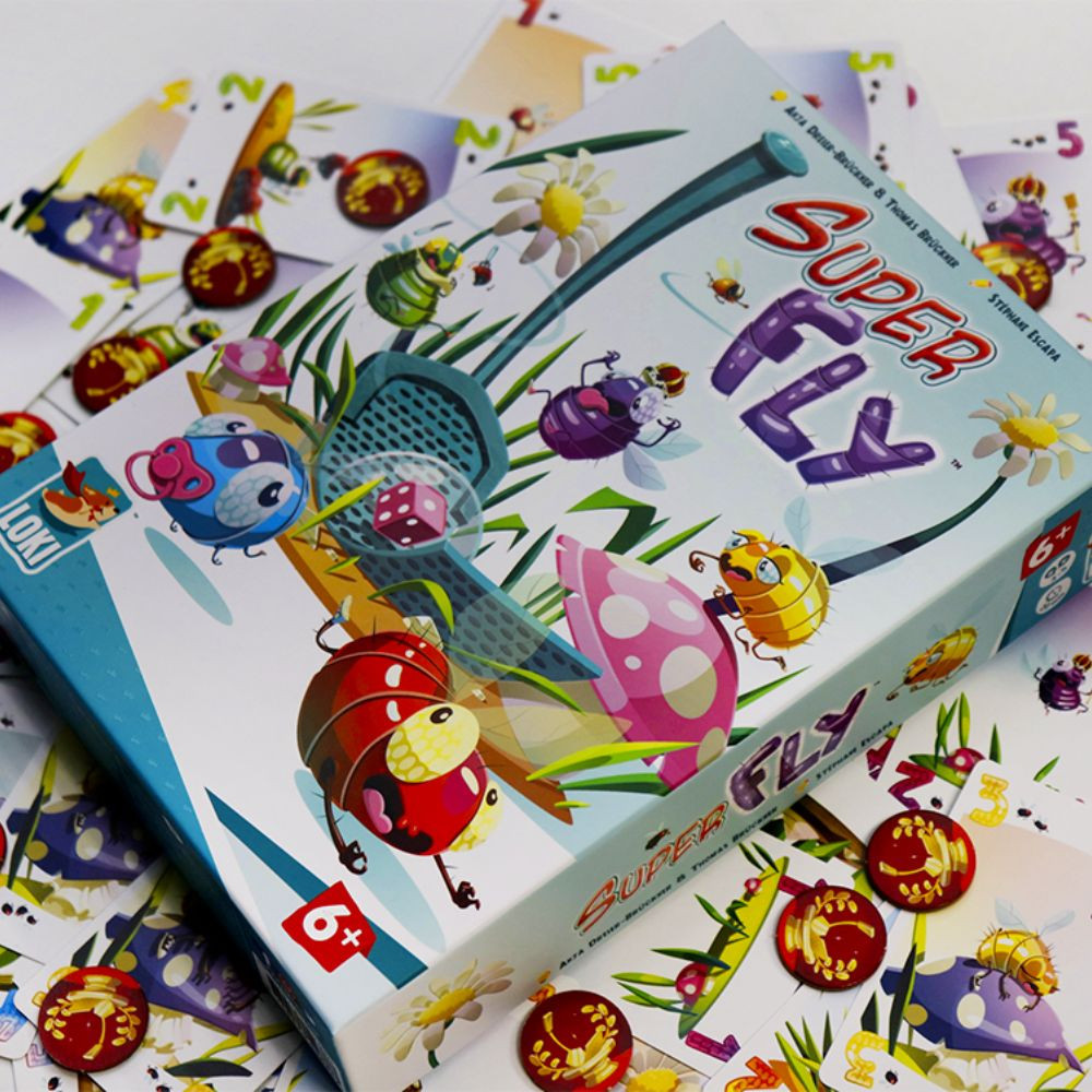 Legyél a legjobb légykapó a pörgős Superfly társasjátékban, amely az egész családnak szól. Ez egy ritmikus és kirobbanó gyűjtögetős játék, amelyben a cél, hogy te gyűjtsd össze a legtöbb legyet. Versenyezzetek, hogy ki tudja leggyorsabban lecsapni a legyeket! Háromféleképpen építheted a különleges kollekciódat: ugyan olyan színű, ugyan olyan számú vagy különböző számú és színű legyek gyűjtésével. Próbálj a leggyorsabb és legügyesebb lenni! Teljesen addiktív társasjáték, legyél te a Superfly királya!
