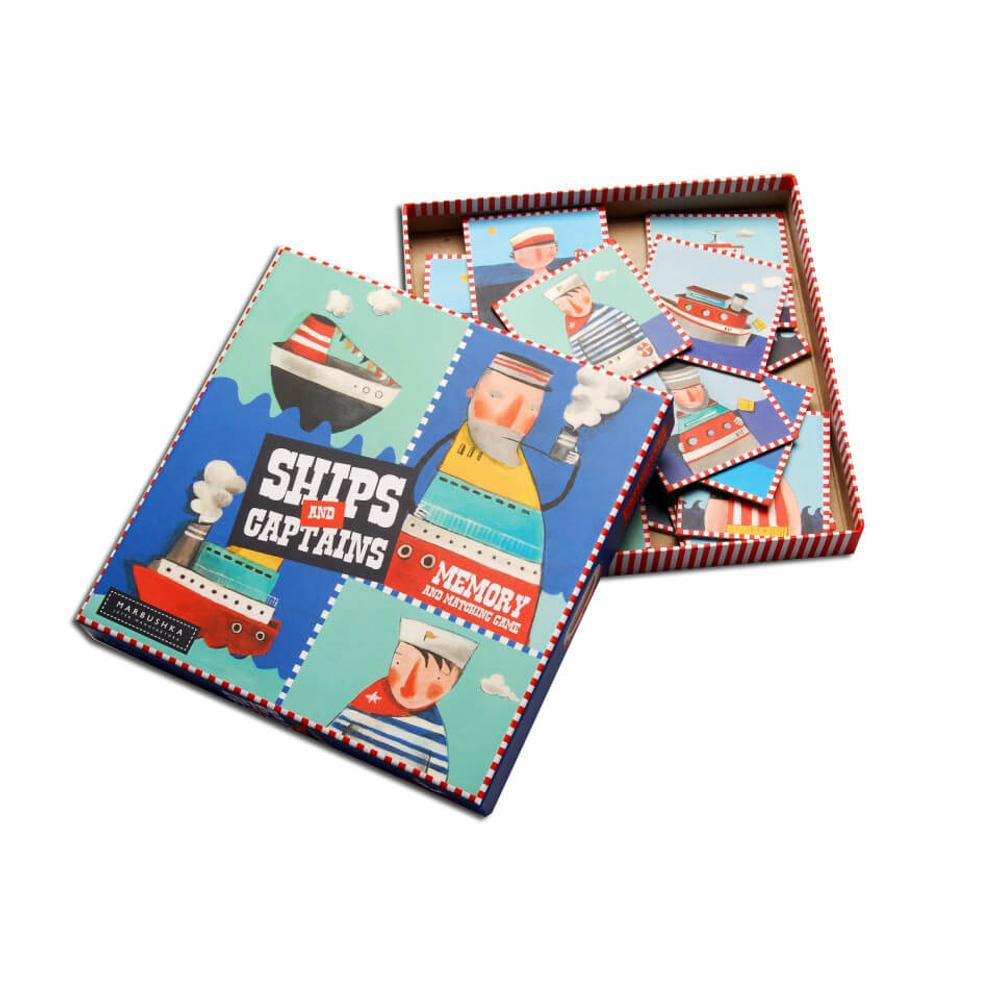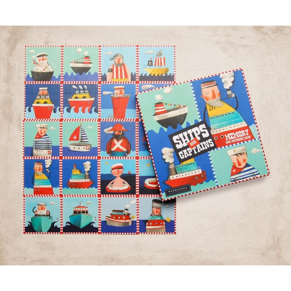 Játssz és élvezd, ahogy a Hajók és kapitányok társasjátékban megkeresed az összetartozó párokat! Minden kapitánynak van egy hajója, amelyek az évek során olyanná váltak, mint a kutya és gazdája: egyre jobban hasonlítanak egymásra. Figyelj és találd meg a helyes párokat ebben a szórakoztató forma- és színfelismerő játékban, amely már 3 éves kortól játszható. A Marbushka társasjátékok híresek művészi grafikájukról, ami leköti a gyerekek figyelmét és még szórakoztatóbbá teszi a játékot.