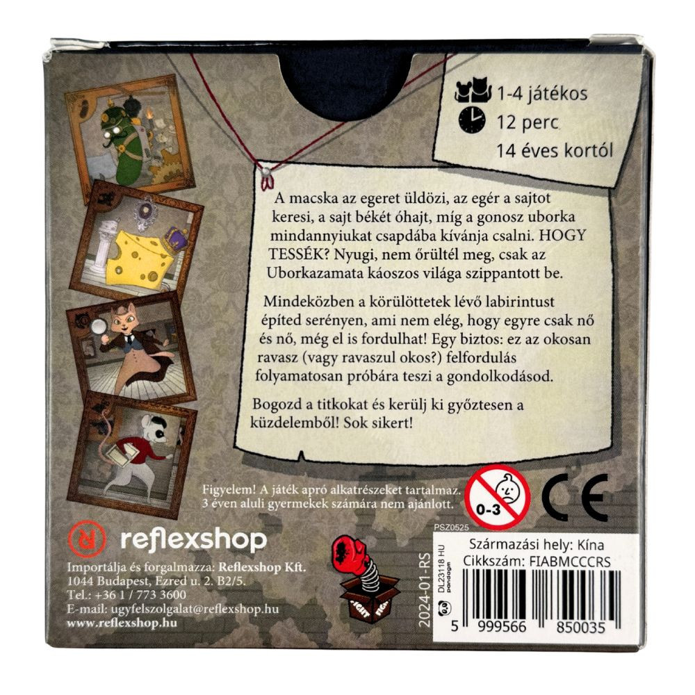 Vidd véghez a titkos tervedet ezzel az izgalmas játékkal! Építsd meg a saját mechanikus útvesztődet, és irányítsd a macskát és az egeret a célhoz! Készülj fel rejtélyekre, titkos szerepekre és labirintusépítésre az Uborkazamata társasjátékban, amely pörgős, aszimmetrikus és lapkalerakós mechanikával kápráztat el minden játékost.