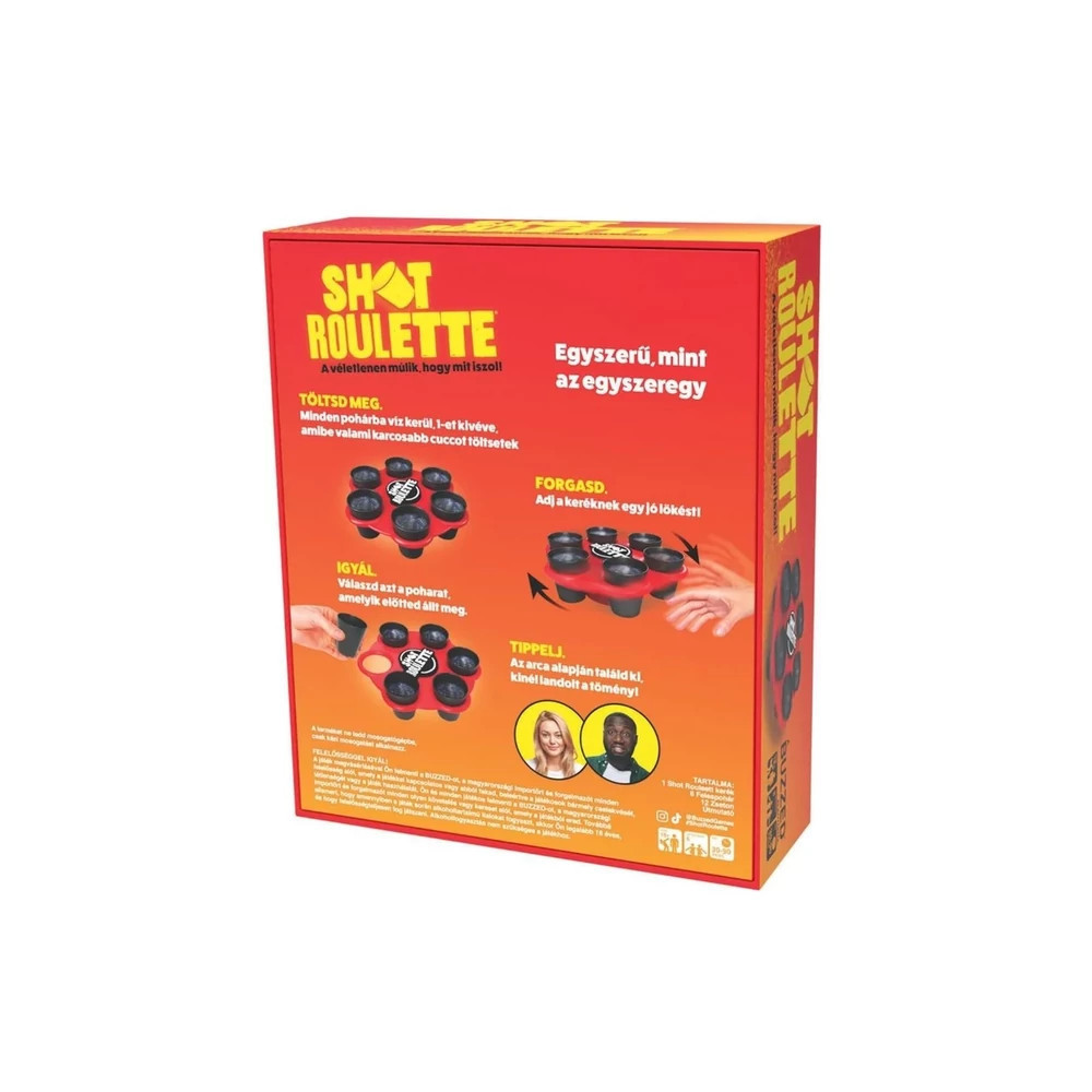 Ebben a pörgős, angol nyelvű partijátékban a roulette középpontban áll: minden forgatás új izgalmat hoz! Ne hagyd ki a lehetőséget, hogy megpróbáld szerencséd, és élvezd a kacagásokkal teli estéket barátaiddal. A játékmenet egyszerű és gyors, garantáltan felpörgeti a hangulatot. A doboz tartalma:
