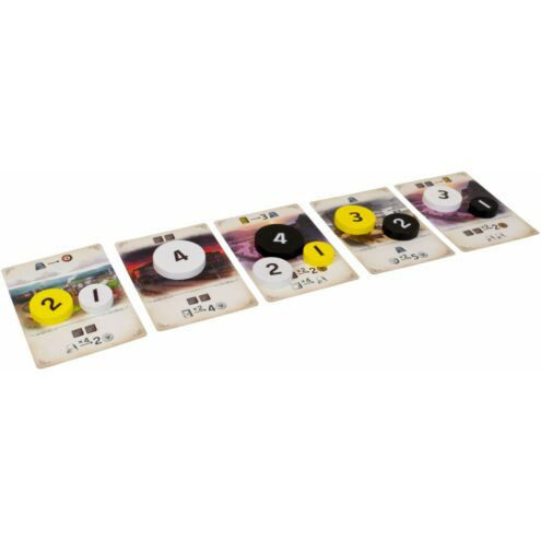 Minden értékből csak egy korong lehet egy kártyán (pl. nem licitálhatsz a 2-es korongoddal, ha egy másik játékosnak már van).