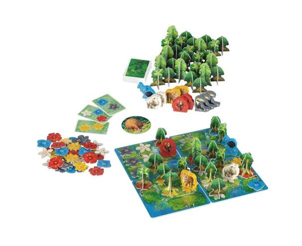 Lépj be az esőerdők csodálatos világába a Hutan - Az esőerdők élővilága társasjátékkal! Ebben a könnyed családi játékban minden játékos saját esőerdei területét gondozza, ahol palántákat és virágokat ültet, amelyek idővel égig érő fákká nőnek.