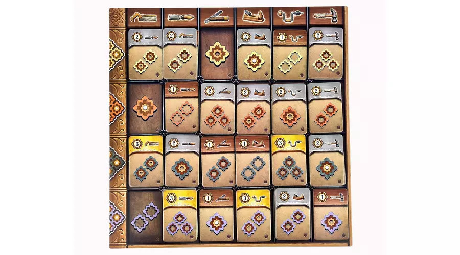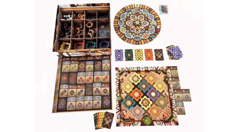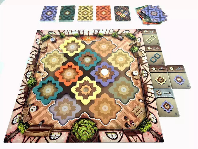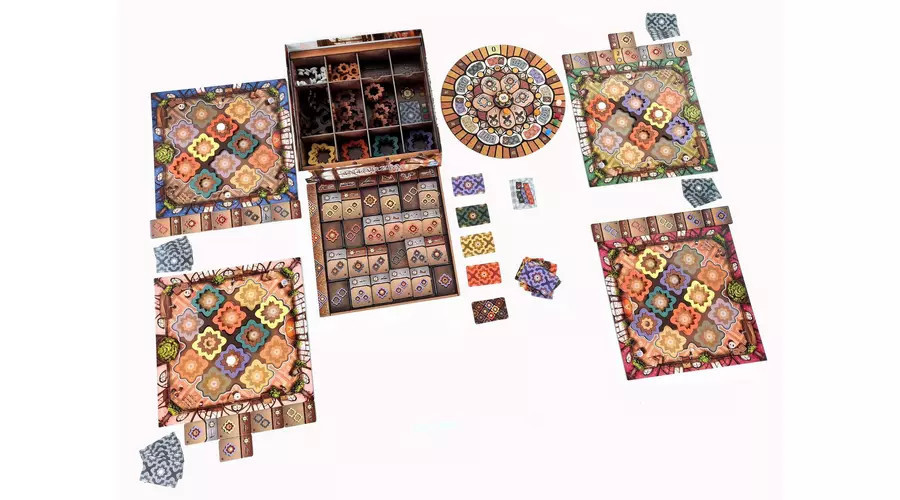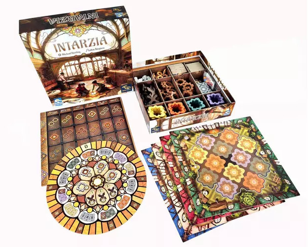 Az Intarzia látványos családi társasjáték az Azul szerzőjétől. A játékosok szép intarziaelemeket választanak és építenek be a saját padlójukba, hogy az övék legyen a legértékesebb.