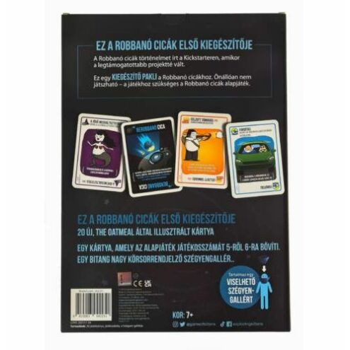 Kedves Játékos! Fedezd fel a Berobbanó cicák társasjátékot, amely a Robbanó cicák díjnyertes kártyajátékának első bővítése. Ez a kiegészítő pakli, amely a Kickstarter történelmében a valaha volt legtöbb támogatást kapott projekt lett, 20 új kártyát hoz a játékba. Ezek a kártyák 6 új akciótípust és egy Berobbanó cicát tartalmaznak, ami lehetővé teszi, hogy a játékot már 6 játékos is élvezhesse.