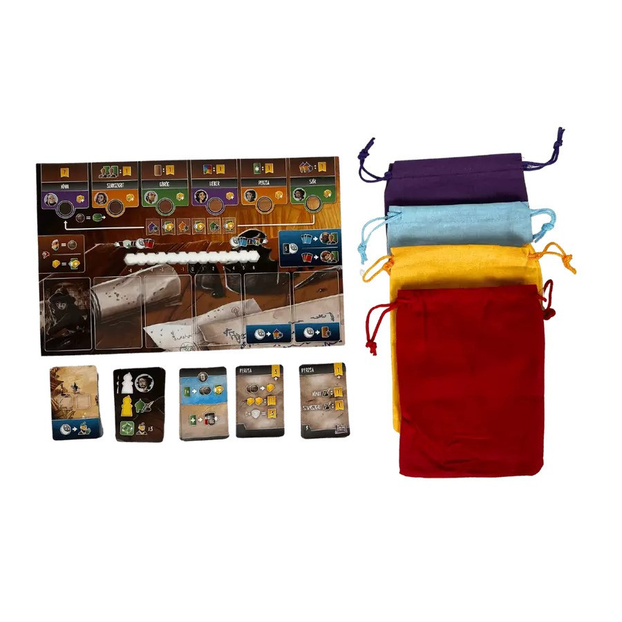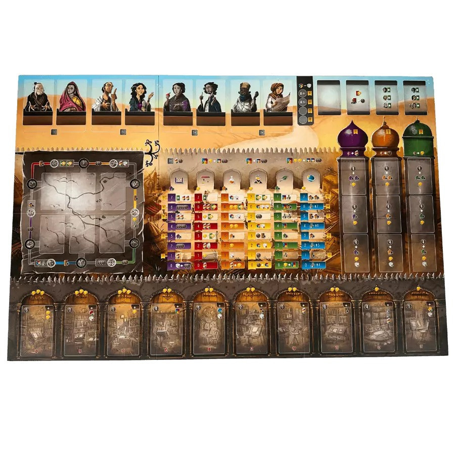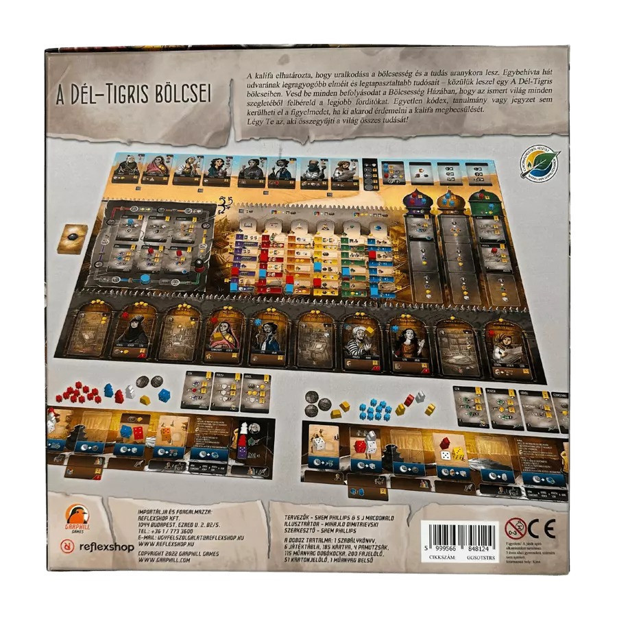 Kedves Társasjátékos! Merülj el az Abbaszida Kalifátus virágkorában, ahol a kalifa meghívására a legélesebb elmék gyűltek össze, hogy a tudományos kéziratokat az ismert világ minden tájáról megszerezzék és az arab nyelvre lefordítsák. Te is részese lehetsz ennek a bölcsesség és tudás aranykorának az A Dél-Tigris bölcsei társasjátékban.