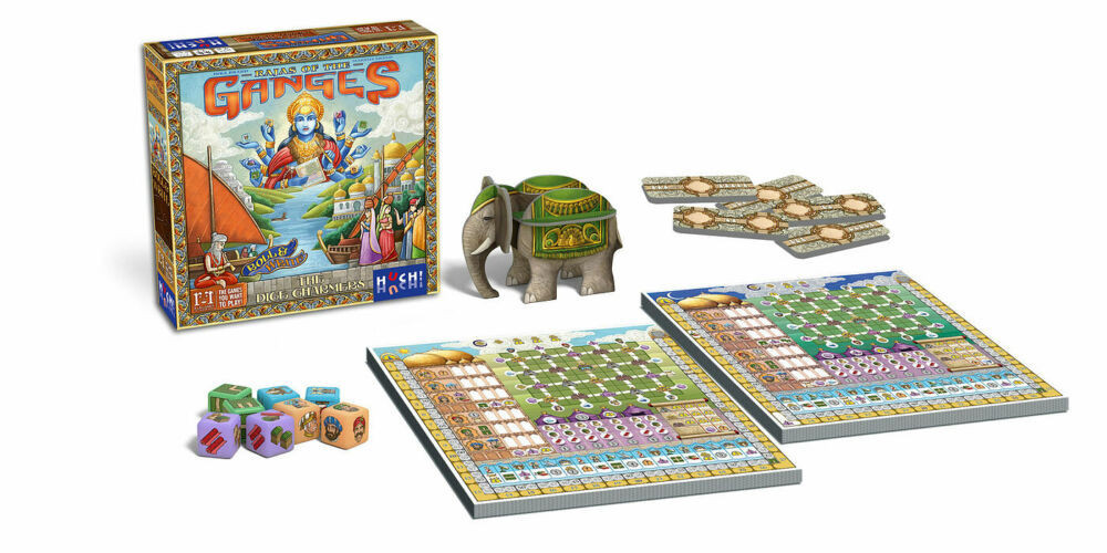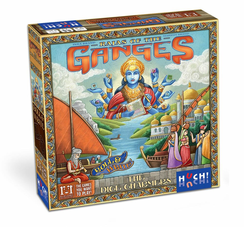 Rajas of the Ganges: A The Dice Charmers az eredeti játék roll and write (dobj és írj) változata. Gyűjts árut, látogass el a palotába és hajózz le a Gangesz folyón a hírnévért és a szerencséért folytatott harcban.