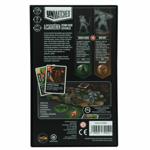 Ha szereted a taktikai játékokat, akkor az Unmatched: Robin Hood vs. Bigfoot társasjáték kiváló választás lehet számodra. A legendás hősök izgalmas csatájában te döntheted el, hogy melyik oldalon állsz, és melyik karaktert bújtatod magadra. Fedezd fel az Unmatched világát, és mérkőzz meg az ellenfeleddel az arénában, hogy megnyerd a játékot és a hírnevedet!