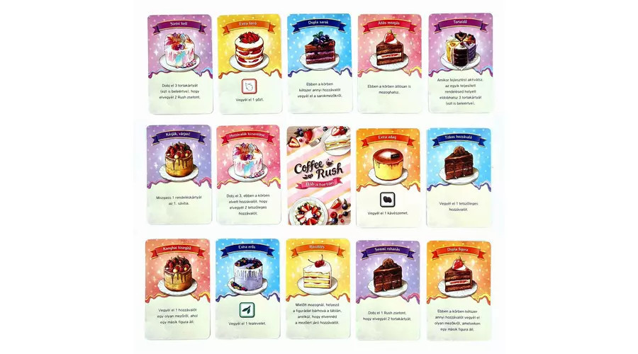 Ne hagyd ki ezt az izgalmas kiegészítőt! Tedd még élvezetesebbé a Coffee Rush társasjátékot a Hab a tortán bővítéssel. Rendeld meg most, és varázsold el vendégeidet a legfinomabb tortákkal!