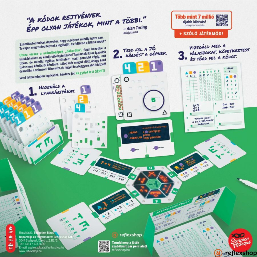 Kedves Játékos! Fedezd fel a Turing Machine társasjátékot, ahol kódok feltörése a fő feladatod, akár egyedül, akár barátaiddal mérkőzve. Éld át, milyen lehetett Alan Turingnak lenni, miközben egy virtuális gép ellen küzdesz.