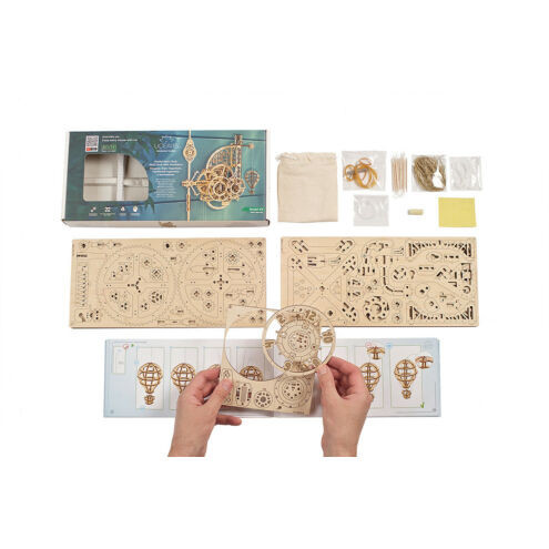 Aero Clock. Falióra ingával - fából készült mechanikus 3D puzzle az UGEARS-tól