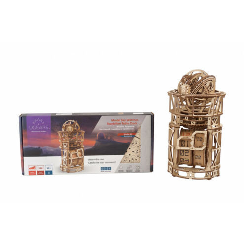 Az Ugears Obszervatórium asztali óra mechanikus modellje a kreatív és technikai elmék számára tökéletes kihívás, akik szeretnék előcsalogatni a mérnöki zsenijüket. A 338 alkatrészből álló modell 15 órás összeszerelési idővel rendelkezik, és haladó szintnek felel meg, amely azt jelenti, hogy a tapasztaltabb építők számára ajánlott. Az asztali óra mérete 12*7.1*6.5 in (30.5*18*16.5 cm), így nagyon látványos darab, amely bármely asztalon magára vonja a figyelmet.